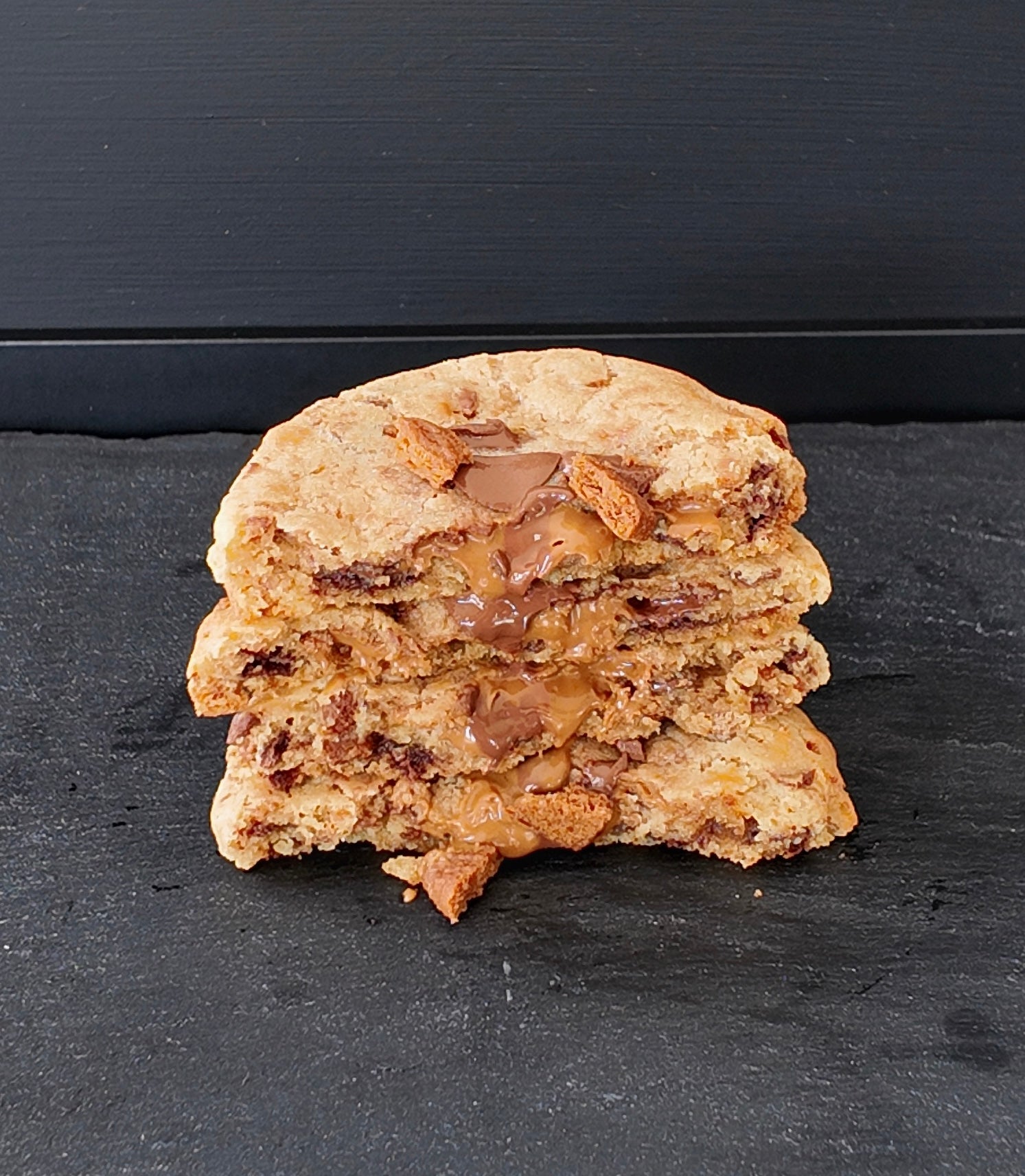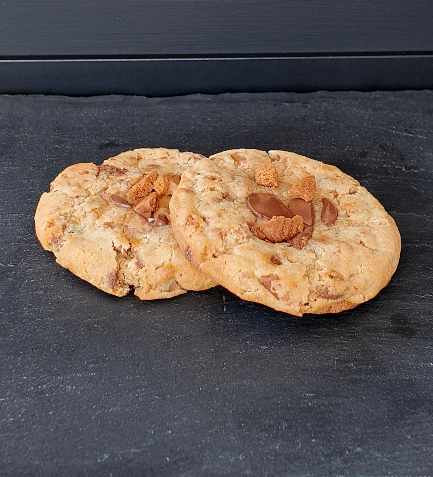 Moelleux, généreux et terriblement addictif. Ce cookie marie intensité et douceur dans une texture fondante, agrémentée d’un cœur fondant ultra-gourmand. Chaque bouchée révèle des notes épicées et réconfortantes, le tout dans un parfait équilibre entre croquant et onctuosité. Une vraie déclaration d’amour aux amoureux du spéculoos.
